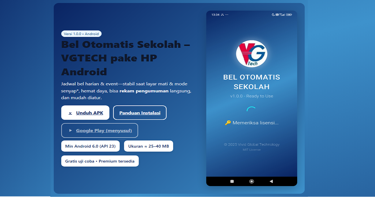 Bel Otomatis Sekolah – VGTECH – Android version Bel Otomatis Sekolah – VGTECH – Android version Was Now IDR 1,500,000 Sale Bel Otomatis Sekolah VGTECH di jalan kan dengan menggunakan Handphone/ Tablet androind , IOS,Aplikasi Bel Sekolah VGTECH mempunyai beberapa fitur unggulan :bisa rekam suara langsung di handphone , tanpa alat tambahan, tanpa konvert apapun, langsung bisa di playmenampilkan jadwal harianmenambahkan jadwal manual dengan manual satu satu atau import file txt dengan menampilkan jadwal langsung selesai (format file txt ditentukan)music bisa mengambil dari local storage handphone atau mengambil dari link di website, apabila local tidak ada kan cari lokasi onlineada free version untuk mencoba terlebih dahulu sebelum membelilicense 1th, 2th, atau 3 th Quantity Enter an amount Rp Add to Cart Add to Cart